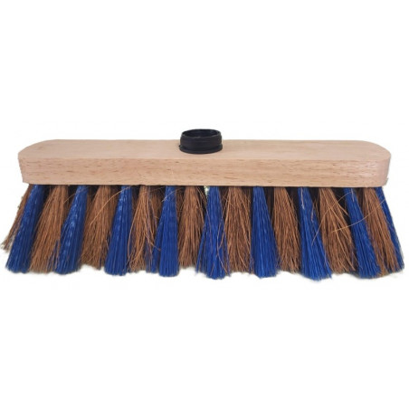 Balai droit structure en bois brut avec fibres de coco renforcés par des fibres synthétiques.