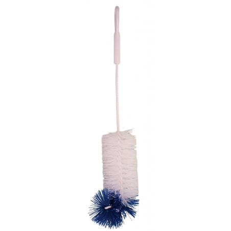 La tête en forme boule et en fibres bleus est idéale pour bien laver le fond de l'objet.
